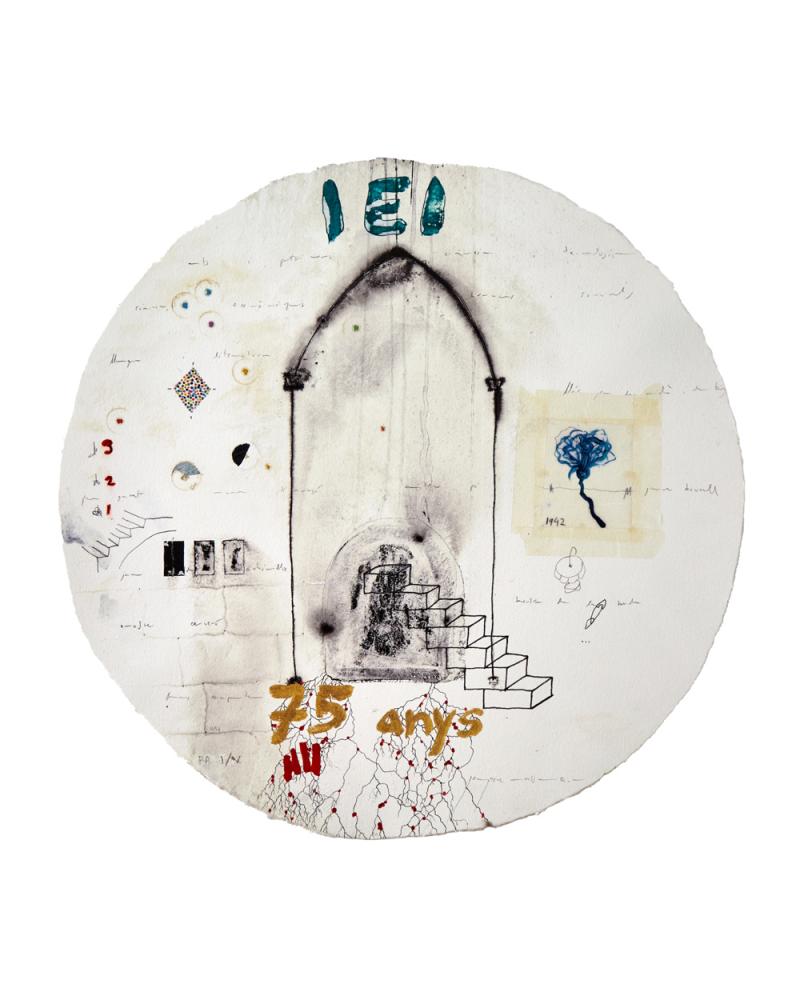 Gravat calcogràfic sobre planxa de fusta, poupée, collage i il·luminat a mà. ( 37 x 27,5 cm / 4,5 x 27,5 cm ) encarregat per Activa Mútua.